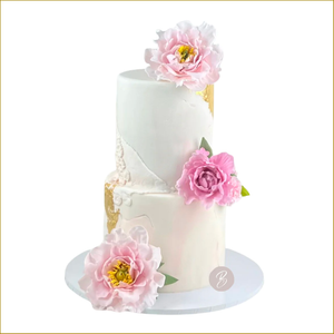 Gold & Pink Peony Sugar Flowers Intimate Wedding Cake