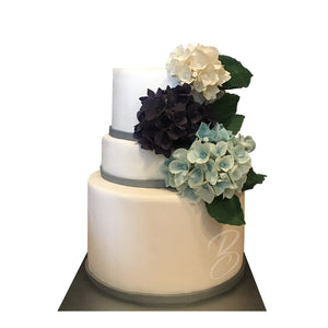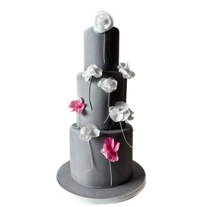 Grey Celebration Cake with White & Pink Wafer Paper Flowers