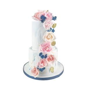 Blue & Pink Sugar Flowers Intimate Wedding Cake