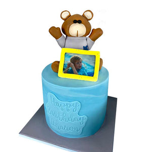 • 3D Brown Teddy + Picture Frame Birthday Cake